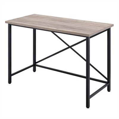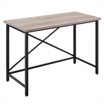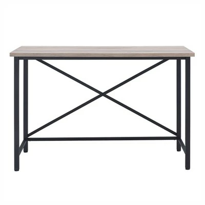 Elevate your home office, game room, or vanity area with the streamlined modern look of this contemporary desk. The sleek lines of its steel frame are offset by a sturdy MDF desktop, allowing you to personalize your workspace against a clean backdrop. Its open lower space provides plenty of room to settle in and take on the day. It’s time to work from home in style!Features : Hand crafted black finish is applied to the steel frame.Features a durable MDF wood desktop.Weight capacity is 40 lbs.Desk features open lower space with wraparound crossbar and an X-shaped rear support.Features easy assembly.Clean with a soft, dry cloth; no harsh chemicals or abrasive cleaning materials.Specifications : Product Weight : 40.60 lbs