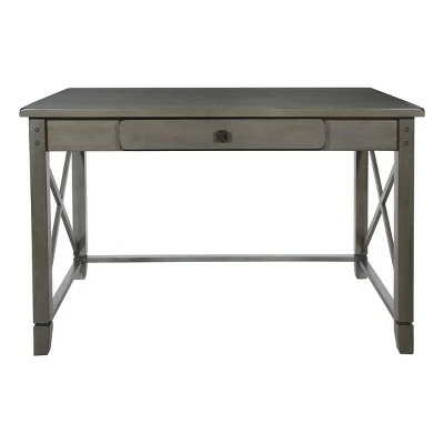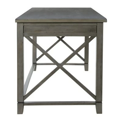 You can’t help but love the rustic farmhouse design of the Hillsboro Collection from OSP Home Furnishings™. This attractive collection features X-side panels that add both charm and support. A warm, distressed antique gray finish highlights these solid-wood furnishings while complementing your home décor. Perfect for your home office, too!