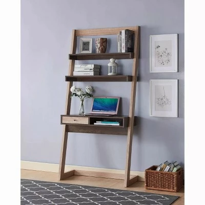 Setup a Modern workspace in any home setting thanks to the Holten Desks slim space saving design. Finished in White and complemented by brilliant walnut oak accents, the desk features spacious upper shelves for storing books, showcasing decor and more. Work with ease on the generous tabletop and store everyday use items in the open shelf or discreetly in the ample drawer. Resting securely against any wall, the Holten Desk is a clever modern office companion that helps elevate your workflow.