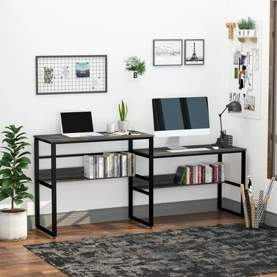 The HomCom computer desk is designed to be a stunning focal point in your contemporary home, office, or study. The simple and stylish piece features unique clean lines. This office desk comes with surfaces, one with higher height (37.5″ H) and one with a lower height (29.5″ H), meaning it can accommodate two people to work or study at the same time. It also can be used as office desk. Durable premium particle board construction with a black finish offers years of reliable use and prevent your skin from being scratched effectively. Add this double sided desk to your working space and start living more efficiently.