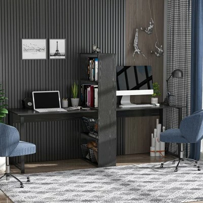 - 2-PERSON DESK: If you have two children, or you want to study with your partner, our computer desk will certainly be a wise choice for you. You can share the same bookshelf while working in a separate area.