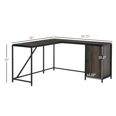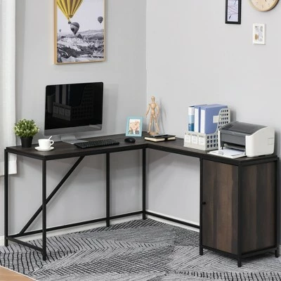 The HomCom L-shaped corner desk is a lovely piece of furniture to have that is both elegant and convenient. Industrial style with metal frame will perfectly match with your home décor. The large workspace and a cabinet with an adjustable shelf help for storing your laptop, monitor or printer, files, and books. Create a stylish working station with this unique piece from HomCom.