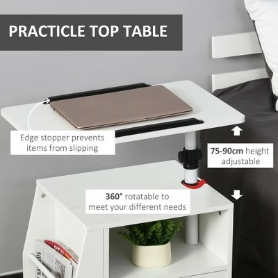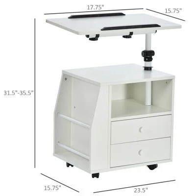 This moveable side table with a tilt/swivel laptop table from HomCom is compact and highly functional. You can use this cabinet table next to the couch as an end table and swing the arm over the armrest to use as a workspace for your laptop. With the edge stopper, your notepads, pens, headphones etc. can securely stay on top of the living room table. With the brilliant swivel caster wheels, the end table can be moved to anywhere you need it and also be used as a nightstand, drawing board, console table, storage cabinet etc.