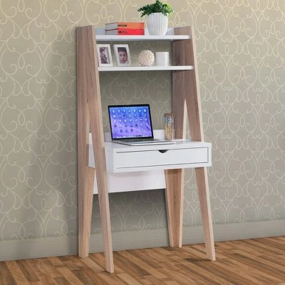 An elegant computer desk which also serves to be a display unit. It is not just a normal computer desk in fact its unique design is just breathtaking and highly functional. It is built in wood and has a weathered white and white color finish. It features two spacious open shelves with one drawer with cut out handle for easy pull out. Not just for using laptop and computer, use it for adorning your favorite books, vases, trophies and other decorative. It is a valuable addition to your living space and also provide you enough space to store your knick- knacks.