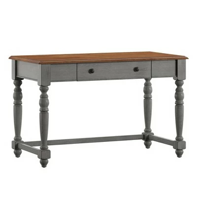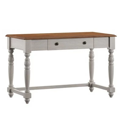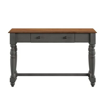 The Ivalyn 1-drawer Desk with Charging Station from Inspire Q establishes a beautiful farmhouse aesthetic in your home office. Proudly boasting a two-tone finish, this simple desk comes in a variety of antique colors, all of which feature a visible wood grain for that classic countryside feel. This chic desk comes with one drawer to store writing essentials and a power and USB outlet built into the top for your convenience. A solid rubber wood construction ensures resiliency and stability for everyday use.