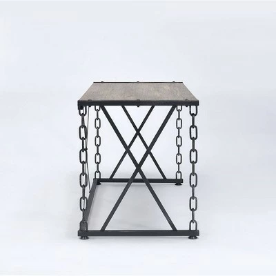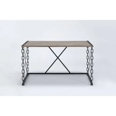 Complete your office with the stylish Jodie desk, features antique rustic oak finish with antique black industrial metal chain frame. This piece offers a new take on your average workspace. A unique and appealing look will add an instant contemporary feel to any space.