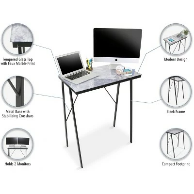 - DURABLE & STURDY: The scratch-resistant glass desktop and metal base can hold up to 60 lbs. while stabilizing crossbars keep your desk steady