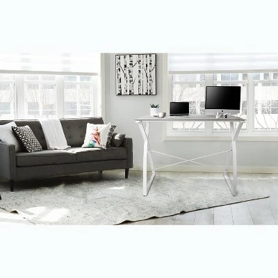 - DURABLE & STURDY: The sleek and sturdy metal base has stabilizing crossbars to secure your desk, while a tempered glass desktop is scratch-resistant to sustain everyday use