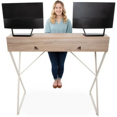 - LIVE ERGONOMICALLY: Desktop stands at 41.5” and the built-in shelf keeps your computer screens at eye level raises monitors to eye level