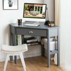 - Small space friendly corner workstation