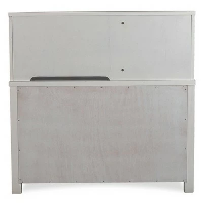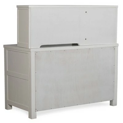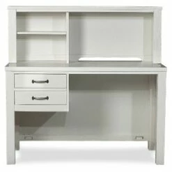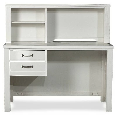 The Hillsdale Kids & Teen Highlands Desk and Hutch Set is designed to last. Made from solid kiln-dried Pine hardwood with a timeless and versatile side panel design. Wire grommets on the desk top help keep workspaces neat and organized. The two left-side drawers feature finished European interiors — meaning that the drawers are as wide and tall as the drawer fronts and the insides have been stained to match the exterior finish. These fully extending drawers also boast 5″ solid iron hardware with a Pewter finish and side-mounted ball bearing guides. The desk and hutch have both undergone a rigorous nine-step DuraBrush finishing process that strips away any weak elements of the wood to leave behind a more durable surface with a beautiful patina. The resulting strength is ideal for kids’ bedroom furniture. The hutch includes one adjustable shelf and one oversized cubby to provide storage configuration options and accommodate large computer screens. And the wire-brushed White finish has style that adapts to your child’s changing tastes. Some assembly required.