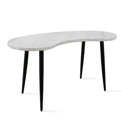Look no further than the Kinsley Desk to revamp the style of your home office! Built for style as well as function, the desk features a kidney shaped white marble top with ebony canted legs for a look that will impress! The 60″ length offers plenty of workspace. Your purchase includes one desk.