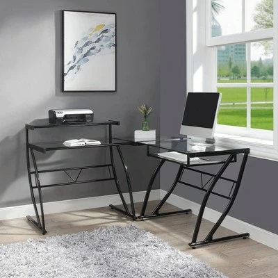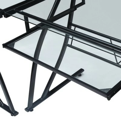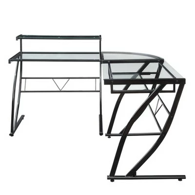 Create a contemporary home office that also offers a great editing and gaming station option with the Constellation L shaped Desk. Tempered, safety glass surfaces and attractive metal frame provides an airy, open style that will compliment and room. Upper glass shelf can position dual monitors at the optimum viewing level and keeps the main desktop area clear for multi-functional tasks or a third monitor. L shape with corner return and a glass pull-out keyboard shelf provides even more useable surface area. Enjoy years of continued use thanks to our durable and sturdy steel frame. Simple, easy-to-follow assembly instructions will get you’re gaming station or home office up and running in a breeze!