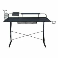 - Left or right interchangeable 8 mm tempered safety glass desktop in black color