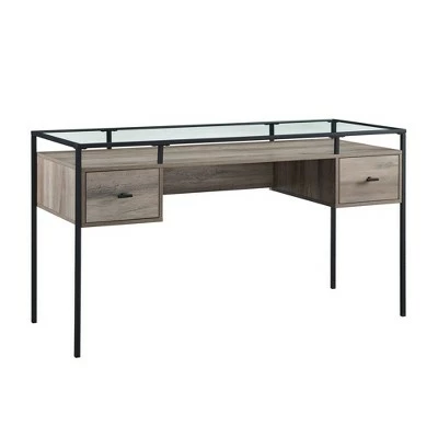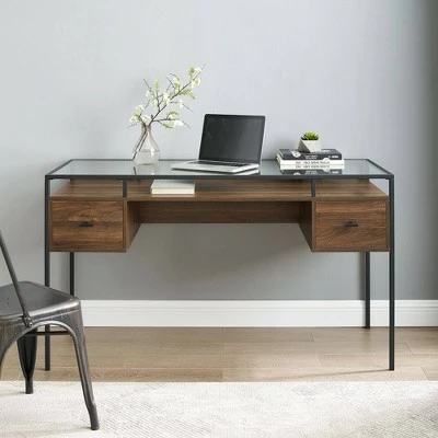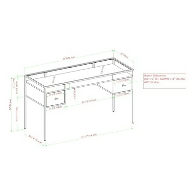 A modern, mixed-material workspace is yours with Saracina Home’s Lamvia Contemporary 2-Tier Glass Top Desk. Your laptop rests confidently on the shatterproof, tempered safety glass top, so you can do your best work in style. The black metal frame gives your home office a complementary nod to chic industrial design. Two drawers on smooth, telescoping metal glides offer the closed storage you need to keep the gleaming glass surface free of clutter. So, pull out those study materials or get ready to work from home with your chic new desk.