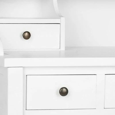 Safavieh fast forwards the old fashioned roll top desk into the 21st century with the Pine wood Landon writing desk in a NC Coating finish. Use it in a home office, bedroom or den; its drawers and storage cubbies help organize your all your essentials. Crafted using Pine wood and MDF wood, this writing desk can hold up to 80 lbs. Landon is perfect in the kitchen for kids’ home workstations too. It is a great choice for Contemporary or Transitional style interiors.