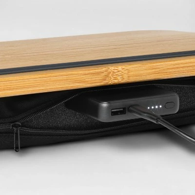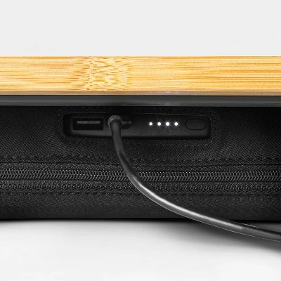 Bring functional flair to your office space with this Lap Desk from Project 62™. Crafted from wooden material, this desk showcases a clean-lined frame with ample space to set down a laptop or spread out supplies for a work project. Plus, the 800mAh battery with the built-in USB-A to USB-C ports helps you keep your electronics charged and at hand. This lap desk not only gives your space a visual boost but also packs a multitude of functions within its simple design.