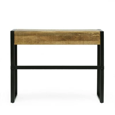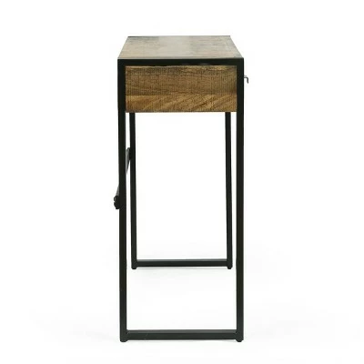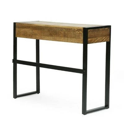 MODERN INDUSTRIAL: Our writing desk incorporates a sleek metal frame with a rich wood top to create an understated modern industrial design. Featuring a sleek sled leg frame and two drawers, this table offers a chic aesthetic to any home.