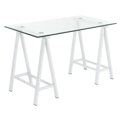 Start a style trend with our Middleton Writing Desk. The visually exciting, chrome architectural frame, pairs beautifully with the heavy 8mm beveled glass top and chrome standoff detailing that floats the glass top above the frame creating an eclectic aesthetic that will elevate any décor. Arrange the ideal spot to check emails or write a quick note to a friend. Create a home office with high style or make use of that corner of the family room that needs a sophisticated uplift. Easy, quick assembly for instant gratification and hassle-free enjoyment.