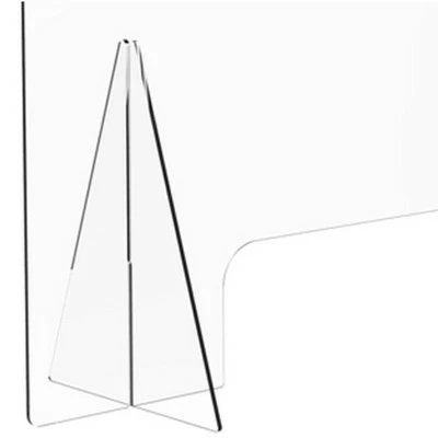 This free standing clear desk protective shield provides a barrier against sneezes, coughs, and respiratory droplets to protect users without isolating them from others. It is easy to assemble and can be setup in less than a minute. It is made of quality clear acrylic, with rounded top edges for safety and a clean, professional look. The bottom window cutout provides an easy way to facilitate transactions.