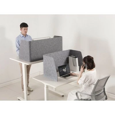 This Desktop Privacy Panel is a fast and easy way to create a barrier to provide privacy and social distancing when working or studying. It works with most desks and flat work surfaces. Simply unfold the side panels and set it up. No tools or assembly is needed. It is made from thick polyester fabric, a material can be used for tacking on reminders, notes, or even decor.
