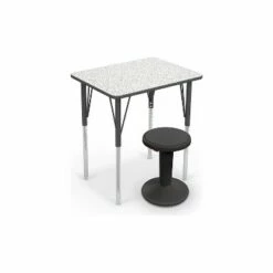 The MooreCo Essentials Economy rectangle desk brings simplicity and functionality in a package made to fit any classroom or school study setting. The desk offers quick and easy assembly, possibilities for numerous group configurations, and height adjustability from 21″ to 30″. Provides flexibility and a comfortable workspace for students. Top available in fusion maple or gray nebula finish with black edge banding, and adjustable powder-coated black steel legs. The legs feature swivel glides. Optional youth height leg insert lowers the adjustment by 6″ to accommodate early childhood users. Rectangular desk brings simplicity and functionality in a package made to fit any classroom or school study setting. Top is made of particleboard in a gray nebula finish with black edge banding; features adjustable powder-coated black steel legs. Dimensions: 30″H x 26″W x 20″D. Meets or exceeds SCS Indoor Advantage Gold standard. Assembly required. Offers height adjustability from 21? to 30?. Legs feature swivel glides. Sold as 1 EA.