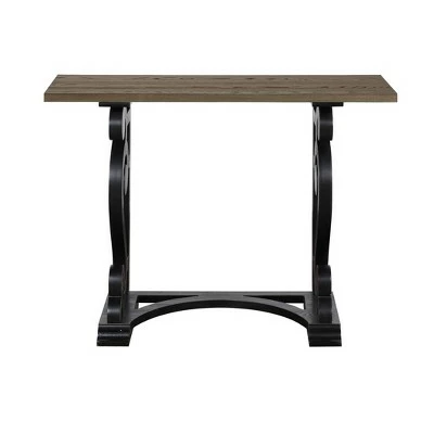 Our stylish new Writing Desk/Console will fit perfectly into any space, and do so in a beautiful fashion. Finished all the way around in our Jules two-tone with sensational scrolled legs holding up the wood grained top, this Desk will not only be a convenient place to write a few letters and send e-mails, but also a lovely Console for displaying a lamp and some of your favorite framed photos.