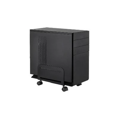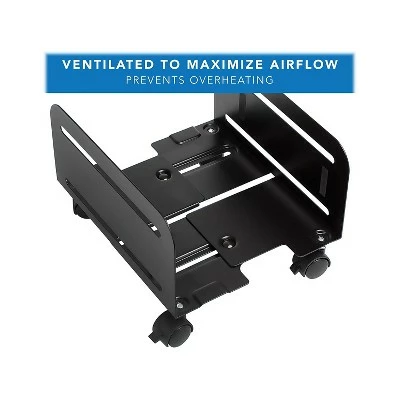 This computer tower holder is designed to support and elevate most computers for easier access. Increases airflow and saves desktop space by storing the CPU under or beside your desk. Two locking wheels and swiveling casters on this computer tower stand provide mobility and stability. Rolls for easier access to the back of the computer. Stand is designed to support and elevate most computers for easier access. Comes in black and made of steel. Two locking wheels and swivel casters. Dimensions: 6.8″H x 4.87″-8.5″W x 10.25″D. Increase airflow with the ventilated sides and by raising your computer off the ground. Supports up to 22 lbs. 10-year manufacturer limited warranty. Sold as 1 Each.