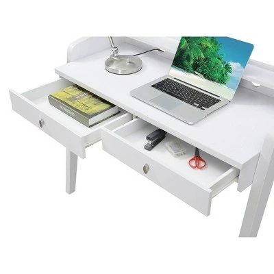 Prepare to have the home office you have envisioned for years with the Newport Deluxe 2 Drawer Desk by Breighton Home. This unit offers as much functionality as it does style. Oval knobs adorn the two spacious drawers, ideal to store your notebooks and essential office supplies. The metal glides allow you to smoothly pull open and close the drawers. With two circular cable management holes, you can accommodate all your electronics, such as your favorite lamp, laptop and cellphone charger. Place in your living room or den, as its versatility is limitless. This piece showcases a contemporary style that will upgrade the decor of any room that it is used in. Made from MDF, particle board and finished with a paper melamine, this unit is easy to maintain. Bring home today and get some work done in style! Its assembly is worth every step. Look for additional items from the Newport Collection by Breighton Home. Each sold separately.