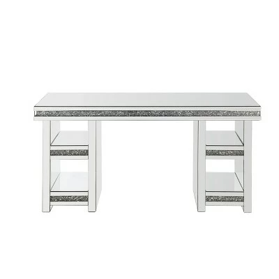 The modern and glam-inspired design makes this writing desk set a truly unique style for your workplace. The desk consists of two storage side tables under desk top, each side table comes with two tier shelf. Faux diamonds border trim enhances it’s design elements and infuses your space with glamour. The writing desk is sure to bring a gorgeous color and luxurious ambiance to any space.