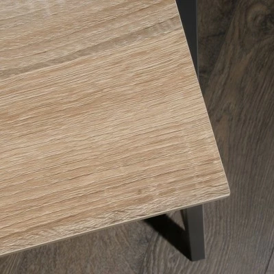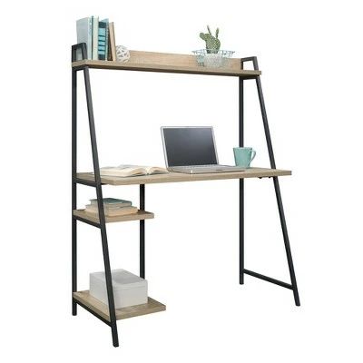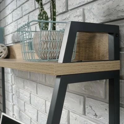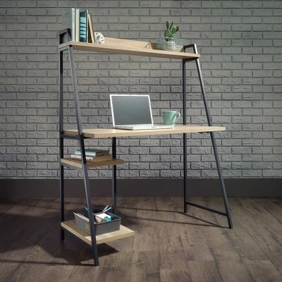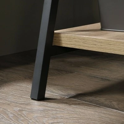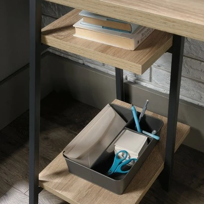 Looking for a little inspiration when it comes to working on your big projects and papers? We’ve got you covered! Find motivation and more when you add modern beauty and unique design to your home office or work space with this desk with hutch from the North Avenue® collection. This student desk features a sturdy 1″ thick top and shelves. Its spacious top surface provides you with the room you need for all your desk essentials like your laptop, stacks of papers, notepads, and your hot cup of coffee. Find room for all your additional office supplies on either of the two lower open shelves. This home office desk also includes a hutch for convenient storage and display of a variety of different items like decorative plants and knick-knacks. Its durable, black metal frame ensures that it’s sturdy and built to last. This desk is finished on all sides so it’ll look great from every angle. Finished in Charter Oak™, this good-looking desk will have you feeling ready to work.