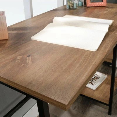 Shopping for a desk is no small feat. A home office desk needs to offer style, but also be practical. A perfect home desk is functional but is also pleasing to look at. The North Avenue® small office desk checks every box on your desk must-have list. With this computer desk with shelves, you are finally able to create a useful spot in your home where you can thrive with unlimited motivation and productivity, from the smallest to the biggest tasks. The North Avenue® computer desk with storage offers the perfect space for work-at-home activities, crafting, or simply writing a grocery list. This simplistically designed desk offers a spacious top surface that provides you with all the room you need for your must have desk essentials: a laptop, collection of notepads, your coffee mug and even a charming accent lamp. It also features two large open shelves that are ideal for easy access storage, so you are always able to see exactly what you have. These shelves are the perfect space for items like work binders, books, organizing bins and sentimental items that spark joy in you. This metal and wood desk is finished on all sides for versatile placement throughout any room in your home. The desks timeless design allows it to integrate seamlessly into your current home décor and furniture while adding a contemporary touch. The North Avenue® desk adds beautiful style and design no matter where it stands. Finished in Sindoori Mango® and detailed with a durable black metal frame, let this