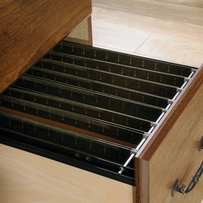 Whether you’re at work or home, work in style with this desk from the Orchard Hills® collection. It features a slide-out keyboard/mouse shelf, storage behind the panel door for a CPU tower, and two drawers that can hold letter, legal, or European size hanging files. All slide-outs and drawers open and close on smooth metal runners with safety stops. Find even more space for office essentials in the cubbyhole and vertical storage compartments of the hutch. With its Carolina Oak® finish, this desk will dazzle while you’re getting the job done.