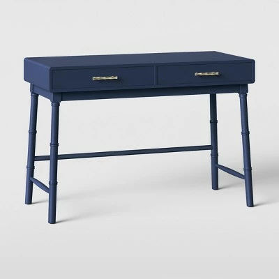 Bring a touch of unique and bold style to any room in your home with this Oslari Painted Desk from Opalhouse™. This desk is made with a sturdy wood frame and features a rounded rectangular top that has two pull-out drawers with gold metal pulls that are textured like bamboo. It also has four wooden legs with carved detailing that create an open and airy design. You can place this desk with two drawers in a home office or craft room to create a functional and stylish workspace. This is your house. Where you create spaces as bold as your spirit. Collect objects as inspired as your dreams. Find pieces that remind you of every place you’ve been. Discover stories to inspire everywhere you have yet to go. This is Opalhouse™.