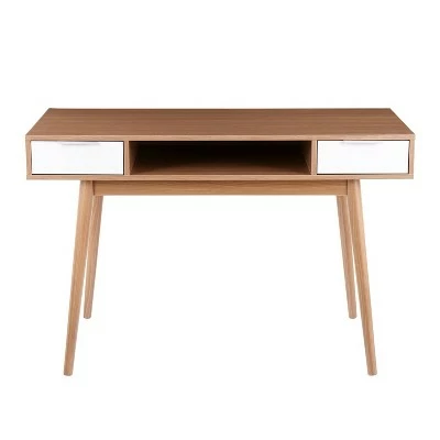 Add casual style to any office space with the Pebble Double Desk by LumiSource. The Pebble Double Desk’s simplistic design is accentuated by a large rectangular wood top, two drawers, and an open shelf, perfect for storing all of your supplies! This desk will be right at home in a home office, a teenagers bedroom, or a dorm.