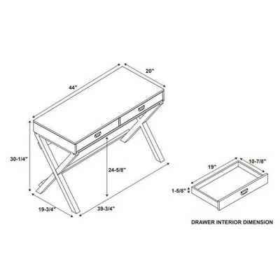 - Compartment 1 Type: Drawer (2): 1.58 Inches (H) x 19.25 Inches (W) x 10.75 Inches (D)
