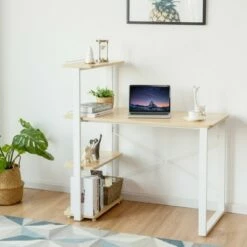 Costway Reversible Computer Desk Study Table Home Office w/Adjustable Bookshelf Natural