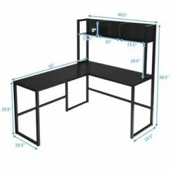 Costway 55” L-Shaped Desk Corner Computer Desk w/Hutch Black
