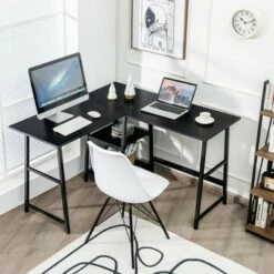 Costway L Shaped Corner Computer Desk Study Table w/Storage Shelves Black/Rustic Brown