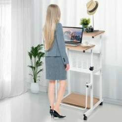 Costway Mobile Standing Desk Rolling Adjustable Laptop Cart Home Office WalnutNatural