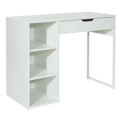 This Ravel desk offers contemporary clean lines in a practical format. The large 40” desk top simply combined with the ample open storage and handy accessory drawer make this desk perfect for any home. Makes a great desk for your office or use it for crafting and special projects. It’s an all around perfect desk for any home!
