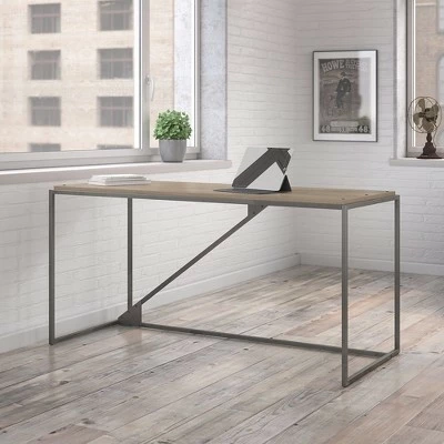 Unique reclaimed looks, industrial appeal and a sturdy space-saving design. The Bush Furniture Refinery 62W Industrial Desk gives your home office, loft or creative space a weathered charm to match your rustic decor. The Industrial Steel frame and exposed bolts join a durable work surface finished in a distressed Rustic Gray to create a table desk you’ll love to use and admire. Spread out with your laptop, projects, crafts or a good book and a cup of coffee with room to spare. Add the 37W Industrial Desk Return (sold separately) to the left or right side to form a spacious L shaped layout. Display your rustic tastes with the 62 inch Industrial Desk, backed by a Bush Furniture 1 Year Warranty. Meets ANSI/SOHO furniture standards for safety and durability. View the full line of industrial furniture to find the perfect fit for your space.