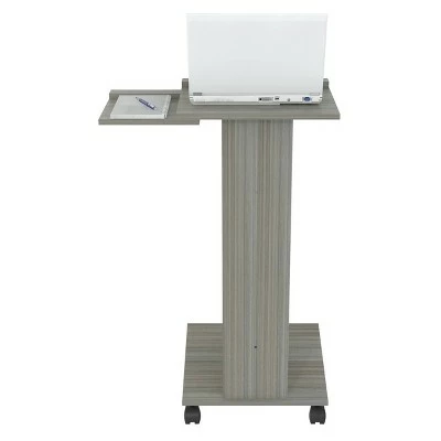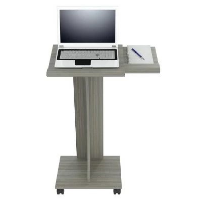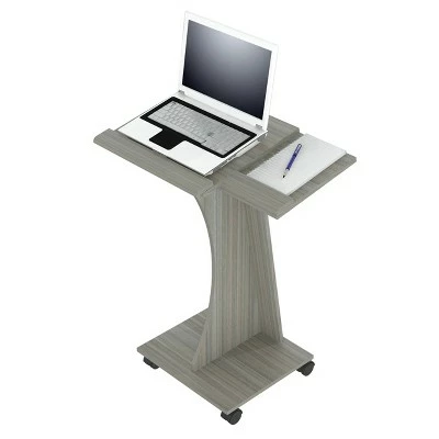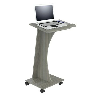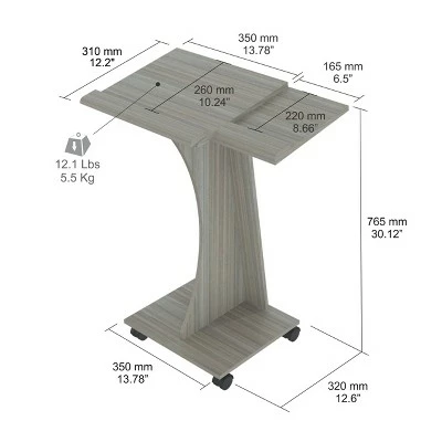 Rolling Laptop Cart by Inval finished in a rich “Smoke Oak” laminates in durable melamine which is stain, heat and scratch resistant. Constructed from manufactured wood. This unit has a functional modern design and is an excellent choice for any home office or office. It sits on four casters for easy mobility, which lock to secure the laptop card in place. It has two separate work surfaces and can be assembled for use with the mouse on left or right surface. Weight capacity 12.1lbs.