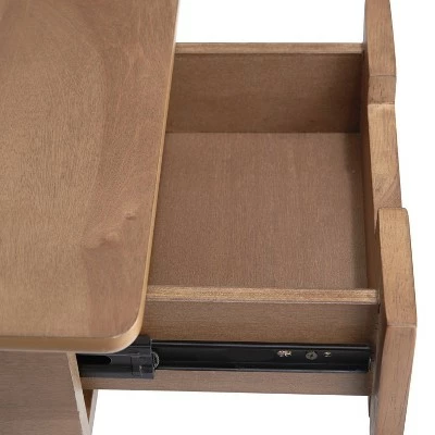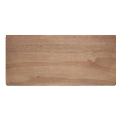 Escape the stuffiness of corporate office decor and bring new life into your home workspace with this mid century inspired rattan desk. The top, side and back panels glow in a natural birch veneer and are complimented by 3 handwoven rattan drawer fronts with cutout handles. The base is made of solid wood and outfitted with glides on its feet to protect hardwood floors. There’s no need for productivity and style to be mutually exclusive in your study, bedroom or living room with this timeless piece.