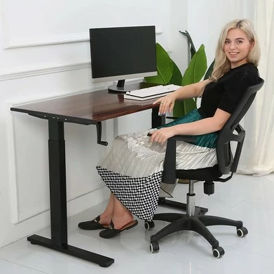 Optimize your office space with the SDADI Adjustable Height Standing Desk. This adjustable desk is equipped with a multitude of functions to suit your individual needs and a high-quality laminate work surface. This sturdy desk relieves the chronic pain you get when slouching or sitting in a chair for multiple hours a day. With a spacious 48 x 24 inch desktop workspace, you can work in comfort with an area large enough to support 2 monitors at a comfortable position. Steel framing is coated in a rustproof finish with a handy power cord holder under the front platform. Easily adjust this desk to any heigh with a smooth crank which can be mounted on either the right or left side. The height of your workspace can be adjusted from 28.7 to 46.3 inches, giving you custom comfort and improving your ergonomics and productivity.With an adjustable height and rustproof finish the Adjustable Standing Desk from SDADI is the ideal assistant for your daily workspace operations.