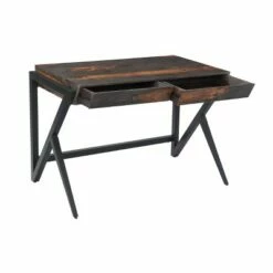 Sophie Modern Farmhouse X Frame Writing Desk with Cubbies – Saracina Home Dark Walnut