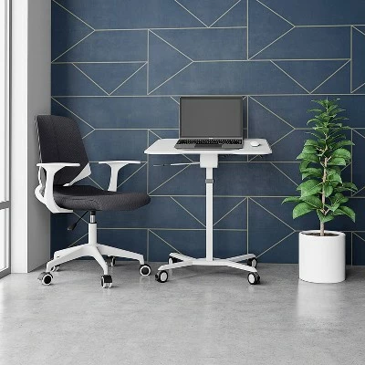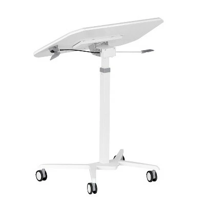 Techni Mobili Sit-to-Stand Rolling Laptop Stand offers an adjustable height mechanism that is compact, portable and is a perfect choice for a laptop or writing setup in a limited space. This Sit-to-Stand mobile laptop stand features a large tabletop with a tilt mechanism attached so it can be adjusted to your most comfortable working angle. It also features a safety edge-stopper to prevent objects from sliding down when tilted. The heavy-duty steel frame supports a sturdy structure, and the non-marking locking casters let you glide while maintaining the balanced level.