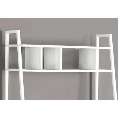 This simple, minimalist computer desk offers a compact work space that is ideal for apartments, condos and other small spaces. With clean lines in a bold white finish, this desk will blend easily with your home decor. The top ladder style shelves can be used to display pictures and decorative pieces while the ample surface area provides enough room for a laptop and other office essentials. Add this convenient piece to your home for a functional workstation, where ample storage options, excellent functional features, and sophisticated style come together.