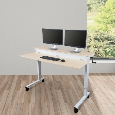- Hand crank height adjustment is simple, strong, and durable; crank can be positioned on either side of desk
