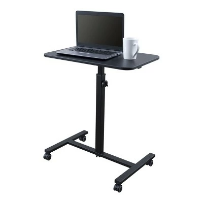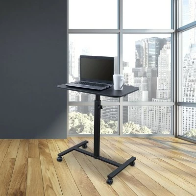 The Height-Adjustable Single Column Standing Desk Laptop Stand offers a simple and cost effective workspace option. Turning the oversized thumb screw lets you access a wide range of sitting and standing height settings. User friendly features include a single column construction and a specially designed base to optimize leg room. A sturdy, all metal powder-coated frame ensures durability. The desktop provides plenty of room to work while still maintaining a small footprint. Overall dimensions are 23.5″ X 15.5″ X 28″ to 40″. Desktop dimensions are 15.5″ W X 23.5″ L. Base dimensions are 16″ W X 23.5″ L. Height adjustment range is 28″ to 40″ H in 2.5″ increments. Weight capacity is 50 lbs. 2″ casters (two with locking brakes). 5-year limited warranty against defects. Stand Up Desk Store is based in the suburbs of Chicago.